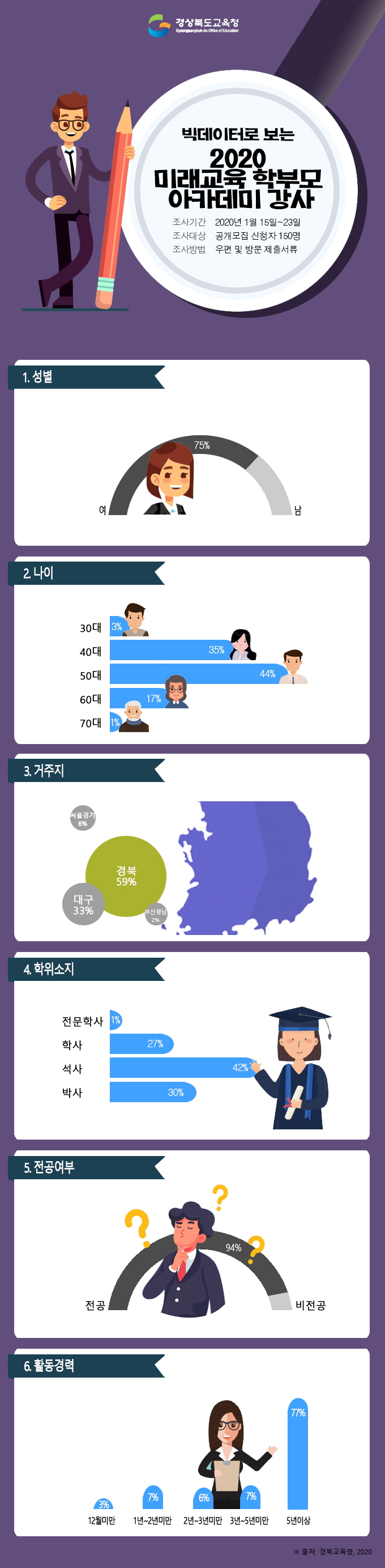 ÇÑÆí, Á¦Ãâ ¼·ù ºòµ¥ÀÌÅÍ ºÐ¼® °á°ú ¿©¼º(75%)ÀÌ ³²¼º(25%)º¸´Ù 3¹è °¡±îÀÌ ¸¹¾Ò°í, Ȱµ¿°æ·Â 5³â ÀÌ»ó 76%, ¼®»çÇÐÀ§ ÀÌ»ó 72%, ´ë±¸¡¤°æºÏ 92%, ±³À°Àü°øÀÚ 94%·Î ³ªÅ¸³µ´Ù.