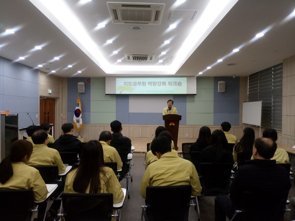 ±èõ½Ã³ó¾÷±â¼ú¼¾ÅÍ(¼ÒÀå ¼¹ü¼®)´Â Áö³ 7ÀÏ(±Ý) ³ó¾÷ÀÎ ÇöÀåÁöµµ ´É·ÂÀ» ³ôÀÌ°í ¼öÁØ ³ôÀº ³ó¾÷±â¼ú ±³À° ¼ºñ½º¸¦ Á¦°øÇϱâ À§ÇØ Áöµµ°ø¹«¿ø ¿ª·®°È ¿öÅ©¼¥ÀÇ Ã¹ °ÉÀ½À» ³»µó¾ú´Ù.