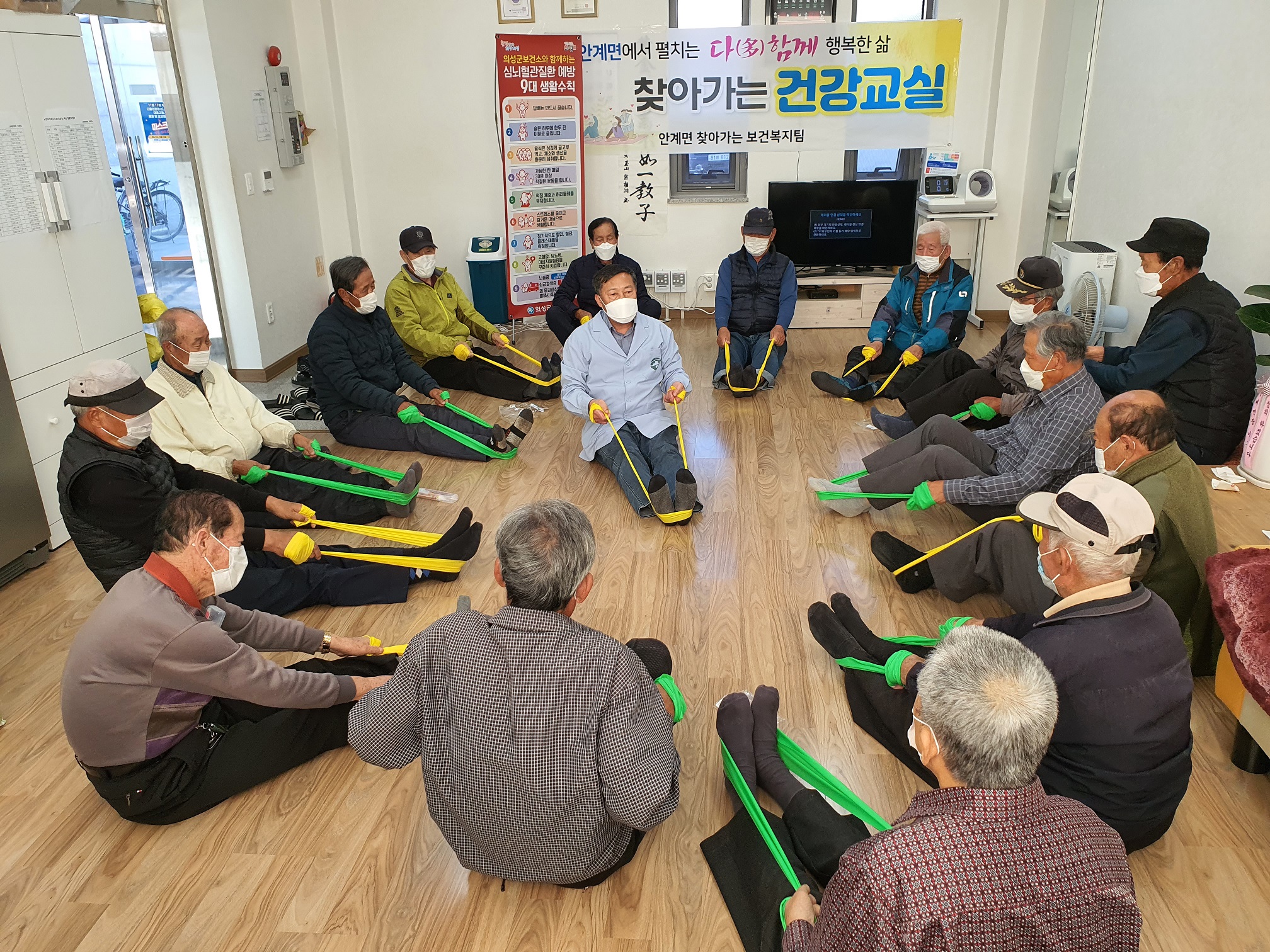 ¾È°èº¹Áö¹®È¼¾ÅÍ¿¡¼ ¿î¿µÇÑ °Ç°±³½ÇÀº ¾î¸£½ÅµéÀÇ °Ç°ÇÑ »ýȰÀ» À¯ÁöÇϱâ À§ÇÑ »ç¾÷À¸·Î, 30¿©¸íÀÌ Âü¿©ÇÏ¿´´Ù.