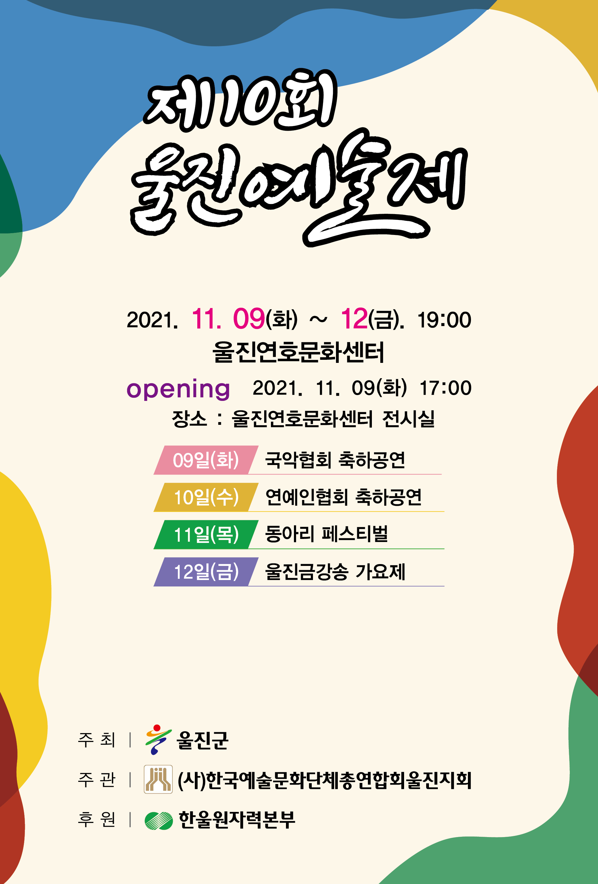 ¿ïÁø¿¹¼úÁ¦´Â (»ç)Çѱ¹¿¹¼ú¹®È´ÜüÃÑ¿¬ÇÕȸ ¿ïÁøÁöȸ(ÀÌÇÏ ¿ïÁø¿¹ÃÑ, ȸÀå ±è°æÇÏ)°¡ ÁÖ°üÇÏ°í »êÇÏ ¹Ì¼úÇùȸ, »çÁøÇùȸ, ¿¬¿¹ÀÎÇùȸ, ±¹¾ÇÇùȸ, µ¿¾Æ¸®È¸¿ø µî Áö¿ªÀÇ ´Ù¾çÇÑ ºÐ¾ßÀÇ ¹®È¿¹¼úÀεéÀÌ Âü¿©ÇØ ¸¸µå´Â Èï°Ü¿î ÃàÁ¦ ÇѸ¶´çÀÌ´Ù.