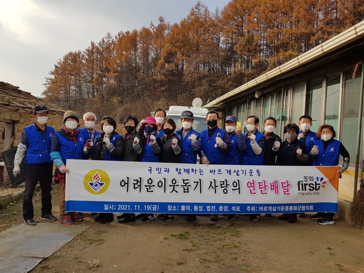 ºÀȱºÇùÀÇȸ´Â ¸Å³â 5°³ À¾¸é¿¡¼ µ¶°Å³ëÀÎ, ´Ù¹®È°¡Á¤, Àå¾ÖÀÎ °¡±¸ µî ¾î·Á¿î °¡Á¤À» ¼±Á¤ÇØ »ç¶ûÀÇ ¿¬Åº ¹è´Þ ºÀ»çȰµ¿À» ÇØ¿À°í ÀÖ´Ù. À̹ø Çà»ç´Â 5°³ À¾¸é À§¿øÈ¸(¹°¾ß, ºÀ¼º, ¹ýÀü, Ãá¾ç, ¼®Æ÷)¿Í ÇÔ²² ¹Ù¸£°Ô»ì±â¿îµ¿ ȸ¿ø 20¿© ¸íÀÌ Âü¿©ÇØ ¾î·Á¿î ÀÌ¿ôÀÌ µû¶æÇÑ ¿¬¸»¿¬½Ã¸¦ º¸³¾ ¼ö ÀÖµµ·Ï ¿¬Åº ¹è´Þ Çà»ç¸¦ ÆîÃÆ´Ù.