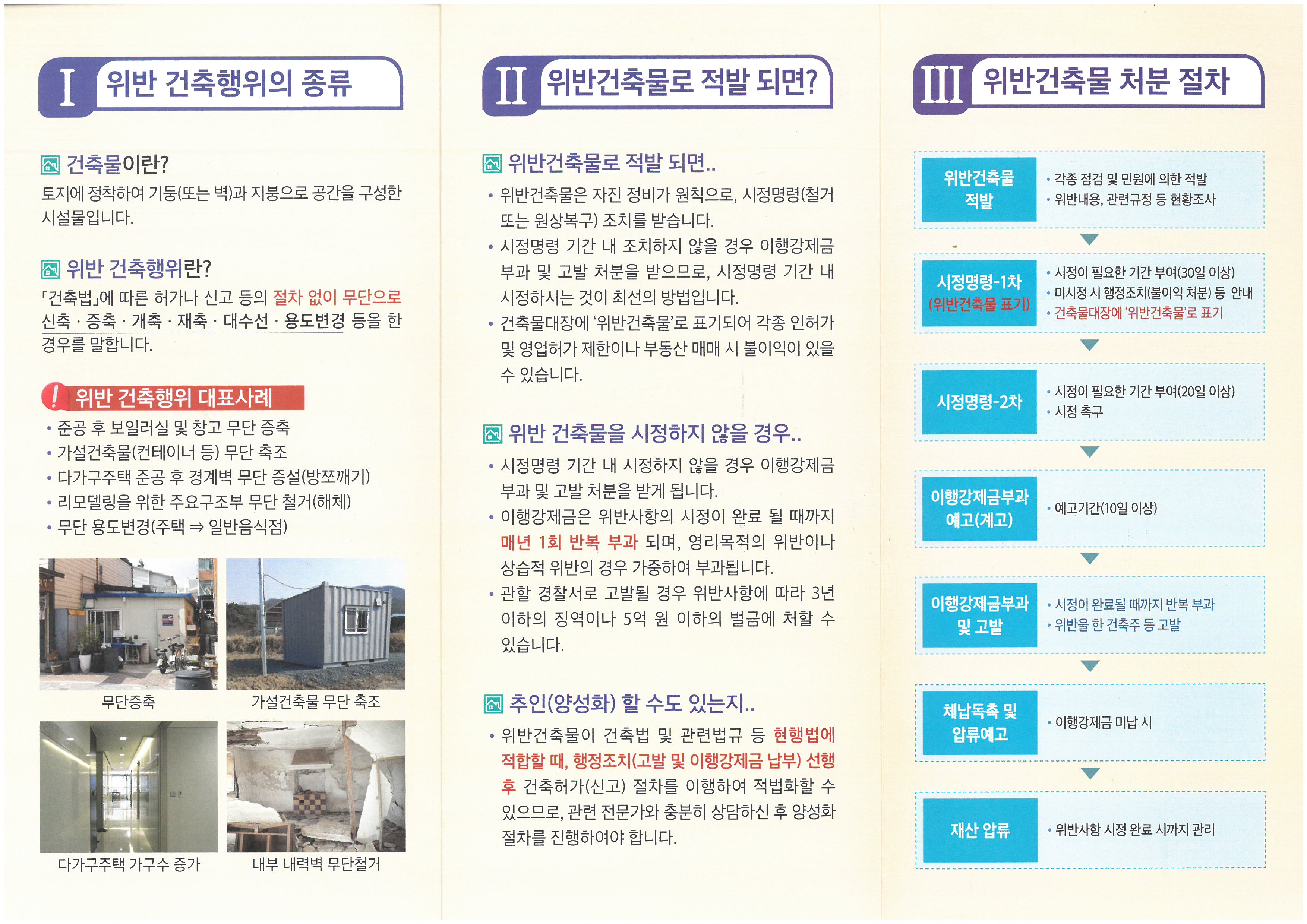 ¸®Ç÷¿¿¡´Â À§¹Ý°ÇÃ๰ÀÇ Á¤ÀÇ¿Í ´ëÇ¥ÀûÀÎ À§¹Ý»ç·Ê, Àû¹ß ½Ã óºÐ¿¡ °üÇÑ »çÇ× ¹× óºÐ ÀýÂ÷, ÀÌÇà°Á¦±Ý¿¡ ´ëÇÑ ³»¿ë ÀÚ¼¼È÷ ´ã°í ÀÖÀ¸¸ç, ½Ã¹ÎµéÀÌ ¾î·Á¿öÇÏ´Â °ÇÃà¹ý¿¡ ´ëÇÑ ³»¿ëÀ» ¾Ë±â ½±°Ô ¼³¸íÇÏ¿© ½Ã¹ÎµéÀÇ ÀÌÇØµµ¸¦ ³ô¿´´Ù.