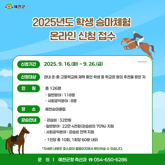 [°æºÏÆ÷Ä¿½º½Å¹®=ÀÌ»óÈñ±âÀÚ] ¿¹Ãµ±º(±º¼ö ±èÇе¿)Àº 2025³âµµ Çлý½Â¸¶Ã¼Çè ½ÅûÀ» ¸»»ê¾÷ Á¤º¸Æ÷Å» "È£½ºÇǾÆ(www.horsepia.com)"¿¡¼ ¿À´Â 9¿ù 26ÀϱîÁö Á¢¼öÇÑ´Ù.