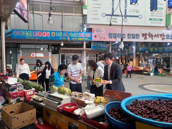 [°æºÏÆ÷Ä¿½º½Å¹®=ÀÌ»óÈñ±âÀÚ] ±èõ½Ã º¹Áö±âȹ°ú(°úÀå ÀÓÀçÃá)´Â Áö³ 22ÀÏ ¹ÎÁ· ÃÖ´ëÀÇ ¸íÀýÀÎ Ãß¼®À» ¸Â¾Æ ÀüÅë½ÃÀå ¼Òºñ ÃËÁø°ú Áö¿ª°æÁ¦ Ȱ¼ºÈ¸¦ À§ÇØ ÆòȽÃÀåÀ» ¹æ¹®ÇÏ¿© À庸±â Ȱµ¿À» ½Ç½ÃÇß´Ù.