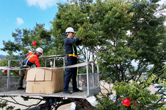 °³¸·À» ¾ÕµÎ°í À±°æÈñ û¼Û±º¼ö°¡ Á÷Á¢ ÇöÀåÀ» ì±â¸ç ÃàÁ¦ ºÐÀ§±â¸¦ ²ø¾î¿Ã¸®°í ÀÖ´Ù. ±º¼ö´Â 17ÀÏ ÃàÁ¦Àå Áß¾ÓÀÇ ´ÀƼ³ª¹« ¾Õ¿¡¼ ¸®ÇÁÆ®±â¿¡ ¿Ã¶ó »ç°ú Á¶Çü¹°À» Á÷Á¢ ¼³Ä¡Çϸç ÃàÁ¦ Áغñ¸¦ ÁøµÎÁöÈÖÇß´Ù. À̸¦ ÁöÄѺ¸´ø ±º¹ÎµéÀº ±º¼ö°¡ ¸ö¼Ò ÃàÁ¦Àå Á¶¼º¿¡ Âü¿©ÇÏ´Â ¸ð½À¿¡ ÀÀ¿øÀÇ ¹Ú¼ö¸¦ º¸³Â´Ù.