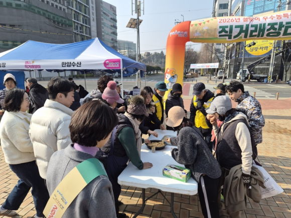 À̹ø ÀåÅÍ¿¡´Â Áö¿ª ³ó°¡ 35È£°¡ Âü¿©ÇØ ¸íÀý ¼±¹°°ú ¼º¼öǰÀ» ºñ·ÔÇØ »ç°ú¡¤¹è µî °úÀÏ·ù, ä¼Ò·ù, Àâ°î·ù, ¹ö¼¸·ù, ¼ö»ê¹°, Áö¿ª ³óƯ»ê¹° °¡°øÇ° µî ¾ö¼±µÈ ¿ì¼ö Á¦Ç°À» ½ÃÁß°¡º¸´Ù Àú·ÅÇÏ°Ô ÆÇ¸ÅÇÑ´Ù. »ý»êÀÚ¿Í ¼ÒºñÀÚ¸¦ Á÷Á¢ ¿¬°áÇÏ´Â Á÷°Å·¡ ¹æ½ÄÀ¸·Î À¯Åë ´Ü°è¸¦ ÁÙ¿© °¡°Ý °æÀï·ÂÀ» ³ô¿´´Ù.