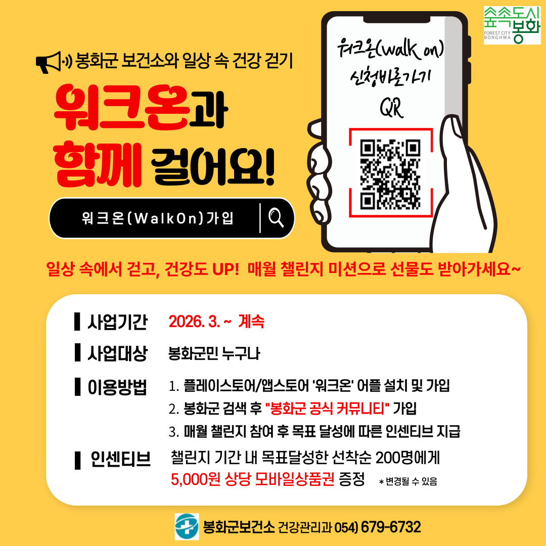 [°æºÏÆ÷Ä¿½º½Å¹®=±èÈñÁ¤±âÀÚ] ºÀȱºº¸°Ç¼Ò´Â Áö¿ªÁÖ¹ÎÀÇ ÀÏ»ó ¼Ó °È±â ½ÇõÀ²À» ³ôÀÌ°í °Ç°ÁõÁø °ú ¸¸¼ºÁúȯ ¿¹¹æÀ» µµ¸ðÇϱâ À§ÇØ "ºÀȱº ÀÏ»ó ¼Ó °Ç° °È±â" °ø½Ä Ä¿¹Â´ÏƼ¸¦ ¿î¿µÇÑ´Ù.