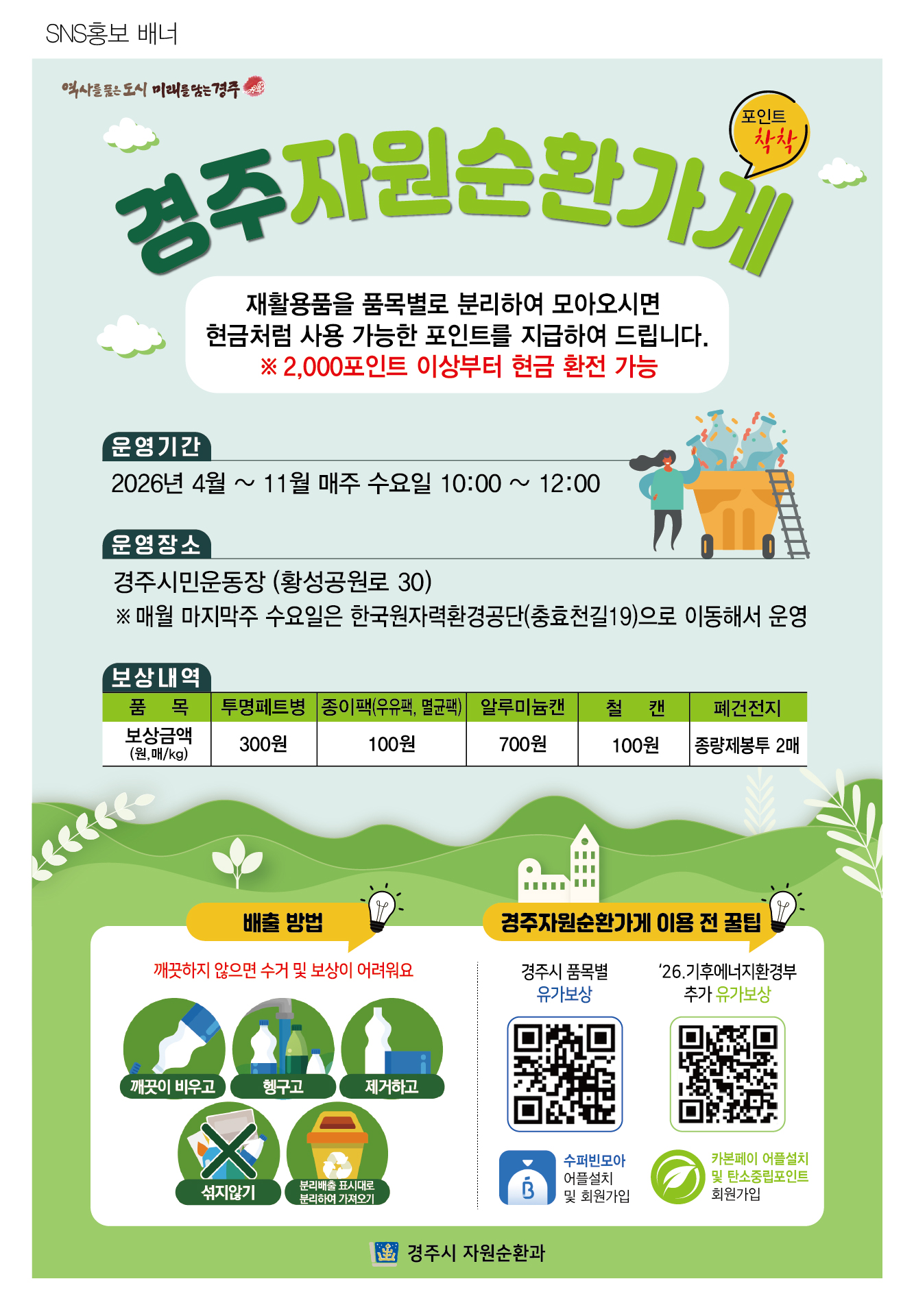 [°æºÏÆ÷Ä¿½º½Å¹®=ÀÌ»óÈñ±âÀÚ] °æÁֽô ÀçȰ¿ëǰ ºÐ¸®¹èÃâ Ȱ¼ºÈ¿Í ÀÚ¿ø¼øÈ¯ ¹®È È®»êÀ» À§ÇØ "ÀÚ¿ø¼øÈ¯°¡°Ô"¸¦ ¿î¿µÇÑ´Ù°í 26ÀÏ ¹àÇû´Ù.