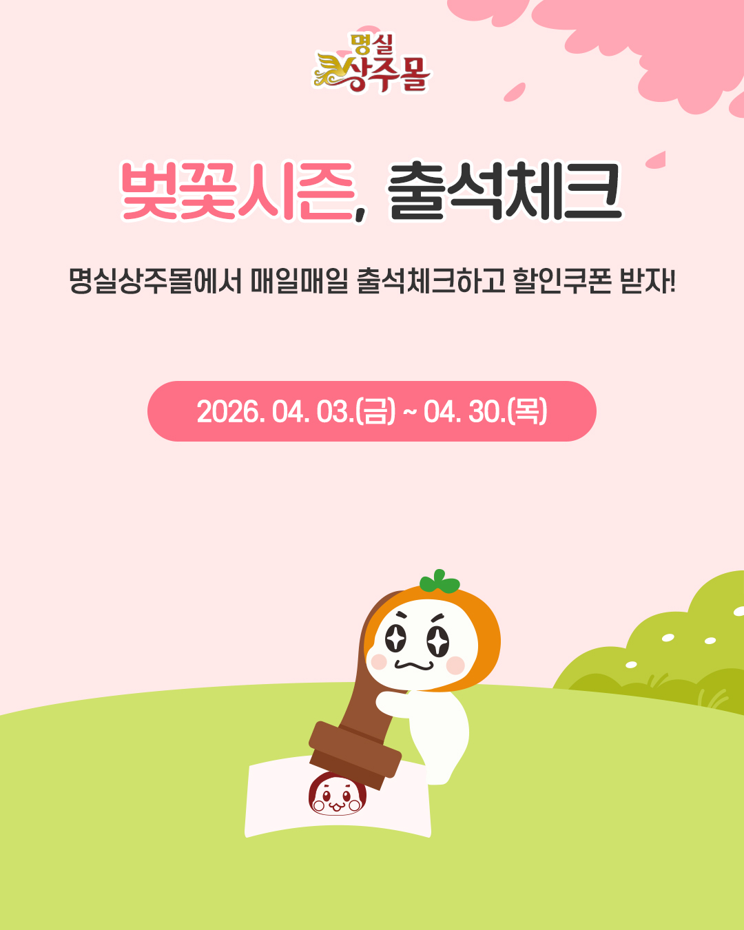 À̹ø Çà»ç´Â 2026³â 4¿ù 3ÀϺÎÅÍ 4¿ù 30ÀϱîÁö ÁøÇàµÇ¸ç, ¸í½Ç»óÁÖ¸ô ȨÆäÀÌÁö(https://sjmall.cyso.co.kr)¸¦ ÅëÇØ ´©±¸³ª Âü¿©ÇÒ ¼ö ÀÖ´Ù.