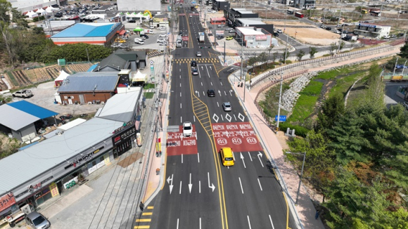 ½Ã´Â ÃÑ»ç¾÷ºñ 183¾ï ¿øÀ» ÅõÀÔÇØ ¿øÈ£¸®¡¤¹®¼º¸®¡¤¼Û¸²¸®¸¦ ÀÕ´Â 2.56km ±¸°£ µµ·Î È®Àå¿¡ ³ª¼¹´Ù. ±âÁ¸ º¸µµ¸¦ ÀϺΠÁ¶Á¤ÇØ Â÷·Î¸¦ È®º¸Çϰí, ÆøÀÌ ºÎÁ·ÇÑ ±¸°£¿¡´Â Àγëõ »ç¸éÀ» Ȱ¿ëÇÑ µ¥Å© º¸µµ¸¦ ¼³Ä¡ÇØ Ãß°¡ Â÷·Î¸¦ È®º¸Çß´Ù. ±¸°£º° À¯ÅÏ °ø°£µµ »õ·Î Á¶¼ºÇØ ±³Åë È帧 °³¼±¿¡ ÈûÀ» ½Ç¾ú´Ù. »ç¾÷ÀÌ ¿Ï·áµÇ¸é ÃâÅð±Ù ½Ã°£´ë Á¤Ã¼°¡ Å©°Ô ¿Ï鵃 °ÍÀ¸·Î Àü¸ÁµÈ´Ù.